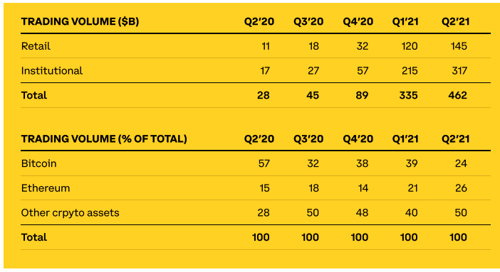 The incremental growth in retail volume from Q1 2021 to Q2 2021 is impressive for a single quarter, frankly, but the pace at which Coinbase added institutional volume in the quarter is even stronger. It’s a huge result.