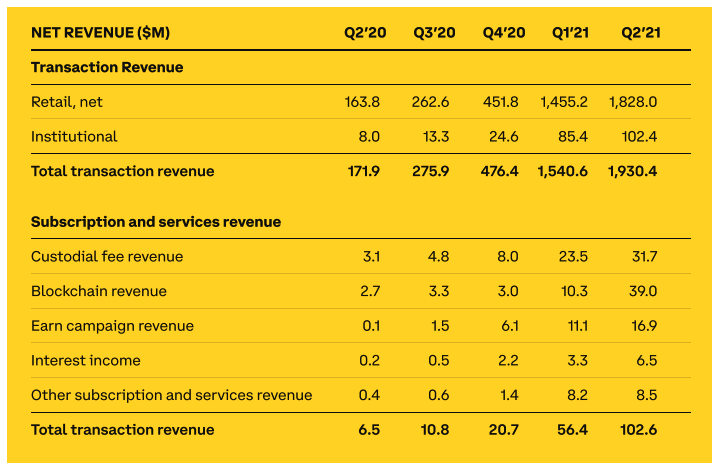 Certainly, Coinbase remains a transaction-led company, but in revenue terms, its third line-item is becoming material.
