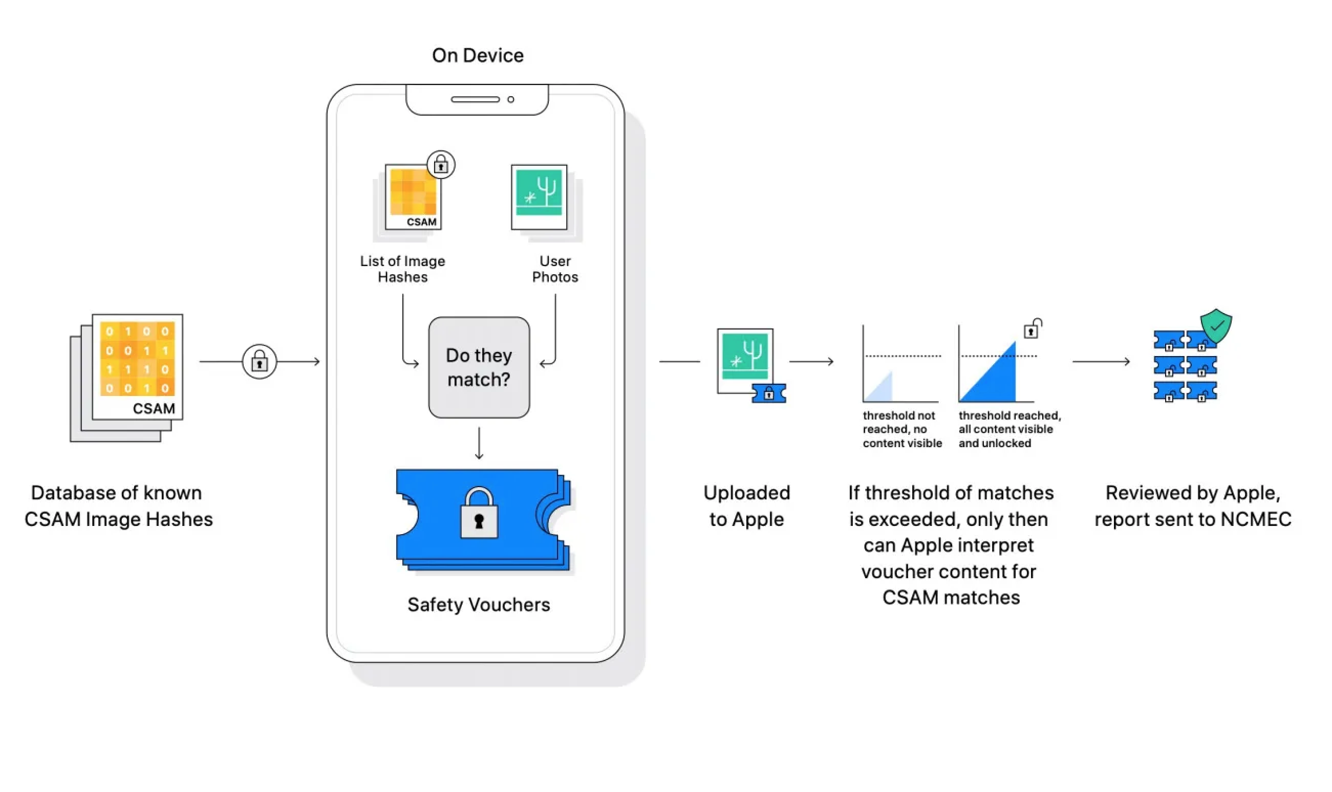 The process of Apple’s CSAM detection in iCloud Photos system. Image Credits: Apple