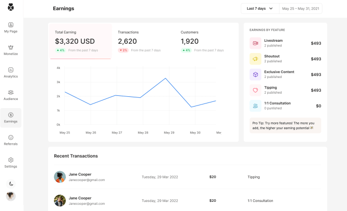 In addition to a standard tipping tool, Snipfeed allows users to sell digital goods, like on-demand video, e-books, access to livestreams and one-on-one consultations. But Snipfeed’s biggest differentiator is its Cameo-like system for selling personalized content. For example, TikToker maylikethemonthh uses Snipfeed to sell asynchronous, video-recorded tarot readings. While asking a single, personalized astrology question costs $5, a more in-depth reading can cost up to $20 or $40.