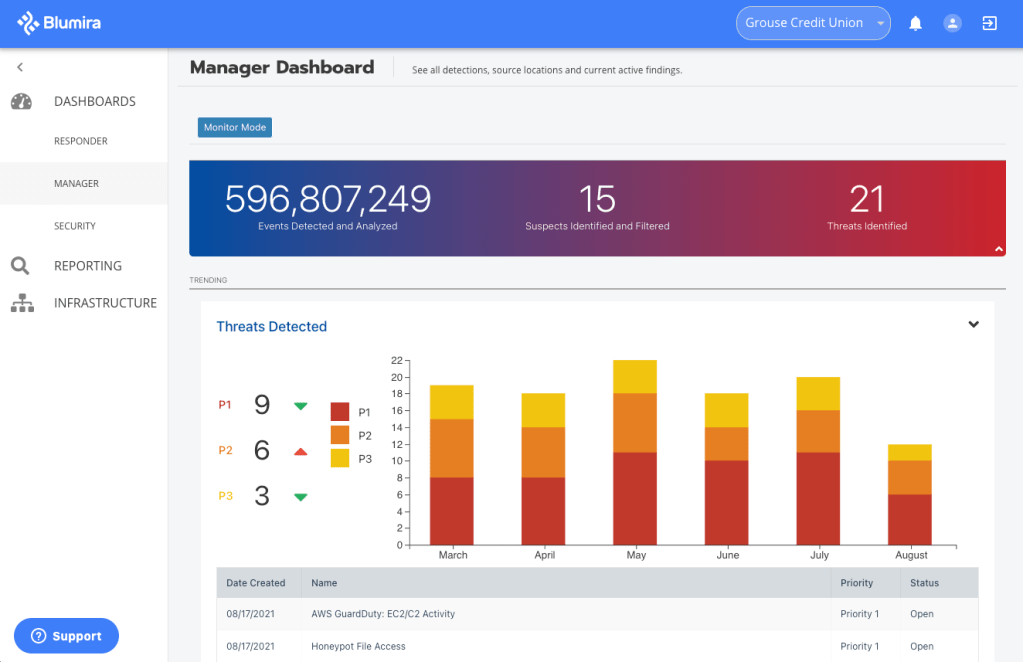 The company, founded in 2018, seeks to provide enterprise-level security to medium-sized businesses through turn-key, cloud-based solutions. Blumira’s solution upends the traditional security information and event management (SIEM) market with a powerful suite of tools designed specifically for mid-market companies that’s relatively more affordable. According to Blumira, its product deploys quickly and gives these companies the security and threat monitoring ability of tools used by giant corporations.