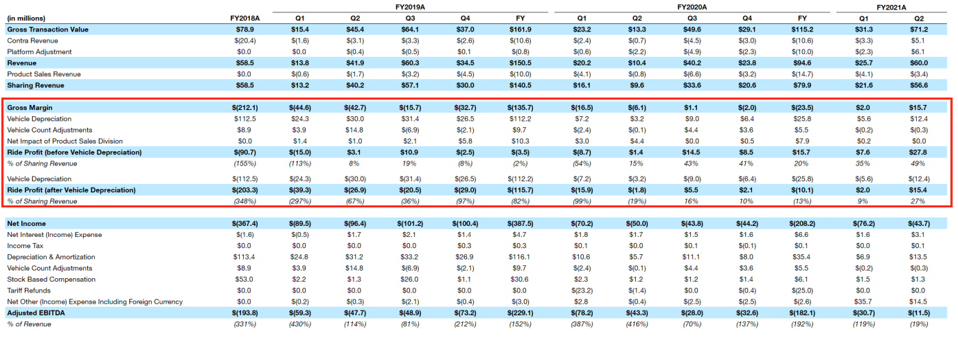 We can see that improvements in ride profit generally correspond with improvements in gross margins. And the company’s recent gross margins result from Q2 2021 was easily its best from the data we have access to.
