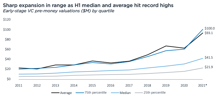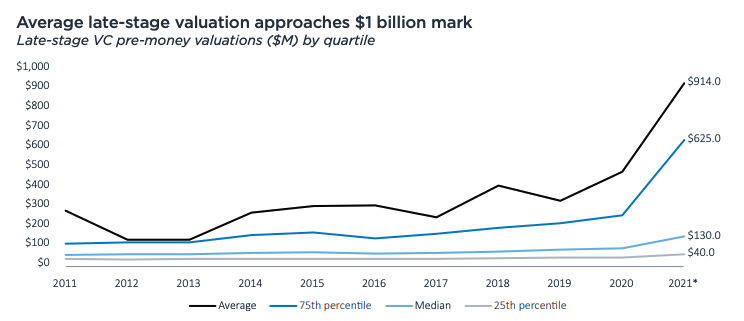 The entire U.S. late-stage venture capital market is having a moment. Despite a 2016-2017 lull in valuation growth, prices for late-stage venture capital rounds have done the following in the first half of 2021: