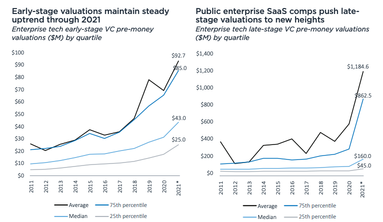 And late-stage valuations for enterprise tech startups have gone vertical (chart on the right):