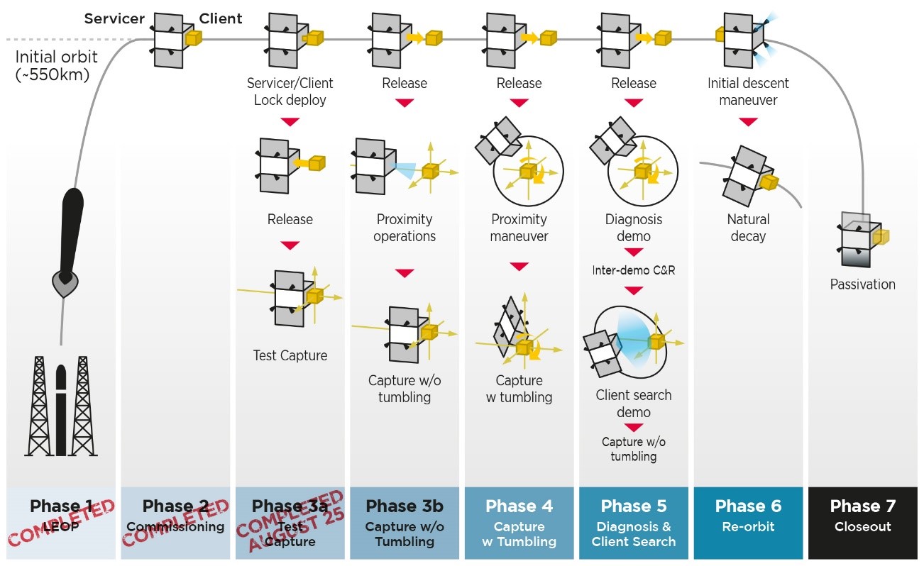 “A major challenge of debris removal, and on-orbit servicing in general, is docking with or capturing a client object; this test demonstration served as a successful validation of ELSA-d’s ability to dock with a client, such as a defunct satellite,” the company explained.