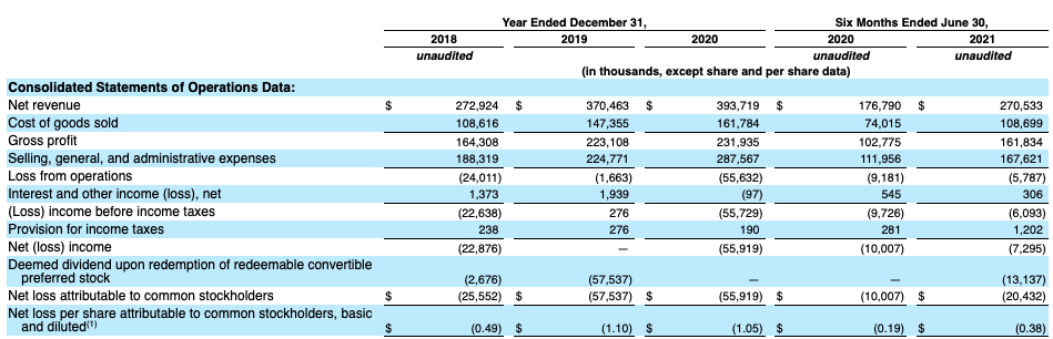 But the first half of 2021 is looking a bit better, with Warby’s growth reducing its net loss from $10 million in H1 2020 to $7.3 million in the most recent two quarters. That’s not amazing implied operating leverage, but it isn’t awful either. Warby is losing less money as it scales in recent quarters, and it will want to be priced as such.