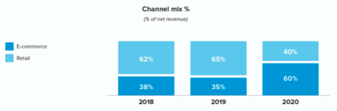 - How important is physical retail to Warby? Very. Warby stores grew from 88 in 2018 to 119 in 2019 to 126 in 2020 to 145 by the end of Q2 2021. Your humble servant actually saw one get put together and opened near where he lives. It looks perfectly nice. But the company’s revenue mix changed sharply last year, impacting its stores’ ability to do their thing. Observe the following chart: