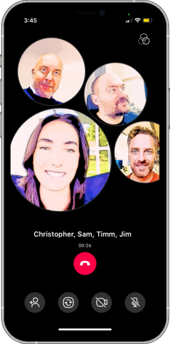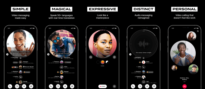 The app’s user interface, meanwhile, has been designed to encourage eye-to-eye contact with the speaker to make conversations feel more natural. It does this by way of design elements where bubbles float around as you’re speaking and the bubble with the current speaker grows to pull your focus away from looking at yourself. The company is also working with the curator of Serpentine Gallery in London, Hans Ulrich-Obrist, to create new filters that aren’t about beautification or gimmicks, but are instead focused on introducing a new form of visual expression that makes people feel more comfortable on camera.