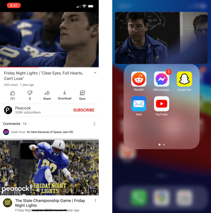 This feature is different from existing picture-in-picture functionality on the YouTube iOS app because it allows you to continue watching a video even while navigating elsewhere on your phone. Similar features already exist on streaming apps like Netflix.