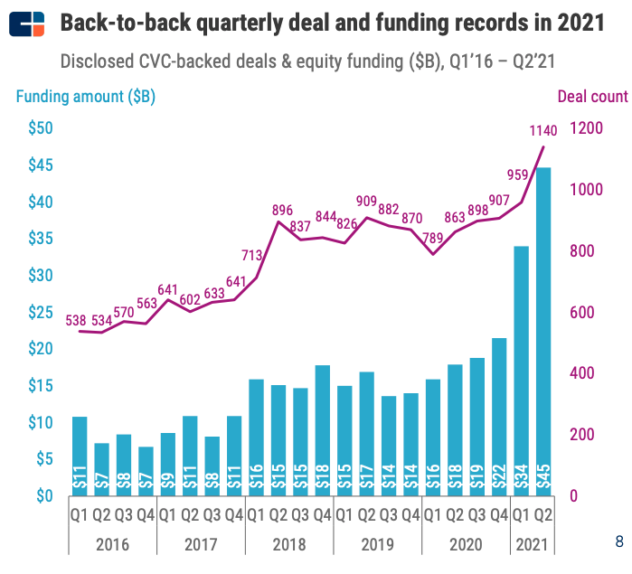 So when we say that global CVC activity appears to be at an all-time high, we are pretty confident that — even with our data caveats — we’re correct. Things are hot in CVC land.