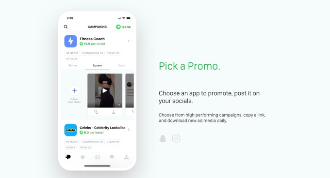 While marketers could use the built-in advertising tools on each of these networks to try to reach their target audience, JetFuel’s technology allows marketers to quickly scale their campaigns to reach high-value users in the Gen Z demographic, the company claims. This system can be less labor-intensive than traditional influencer marketing, in some cases. Advertisers pay on a cost-per-action (CPA) basis for app installs. Meanwhile, all influencers have to do is scroll through The Plug to find an app to promote, then post it to their social accounts to start making money.