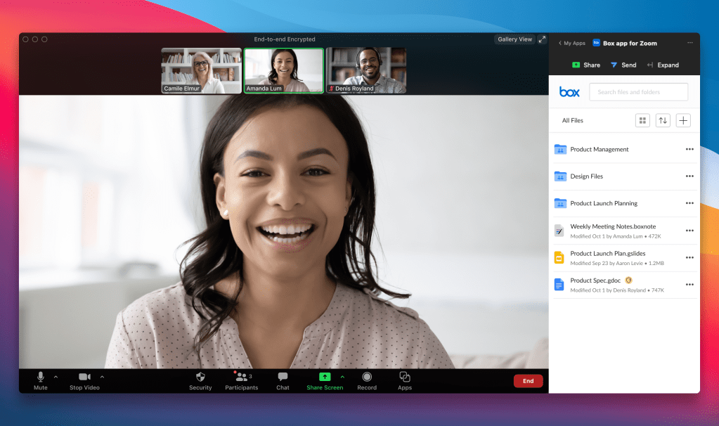 Their newest collaboration is the Box app for Zoom, a new type of in-product integration that allows users to bring apps into a Zoom meeting to provide the full Box experience.