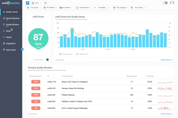 “The customer feedback was over-the-top positive. Spotify, Cornershop, Pinterest, Whoop and Strava all rave that not only does unitQ ingest all of their data from app store reviews, internal support tickets and social media feedback, but they correlate this data so that it gives them the highest-value bug and improvement fixes for their products, something they could not find elsewhere,” Fletcher told TechCrunch.