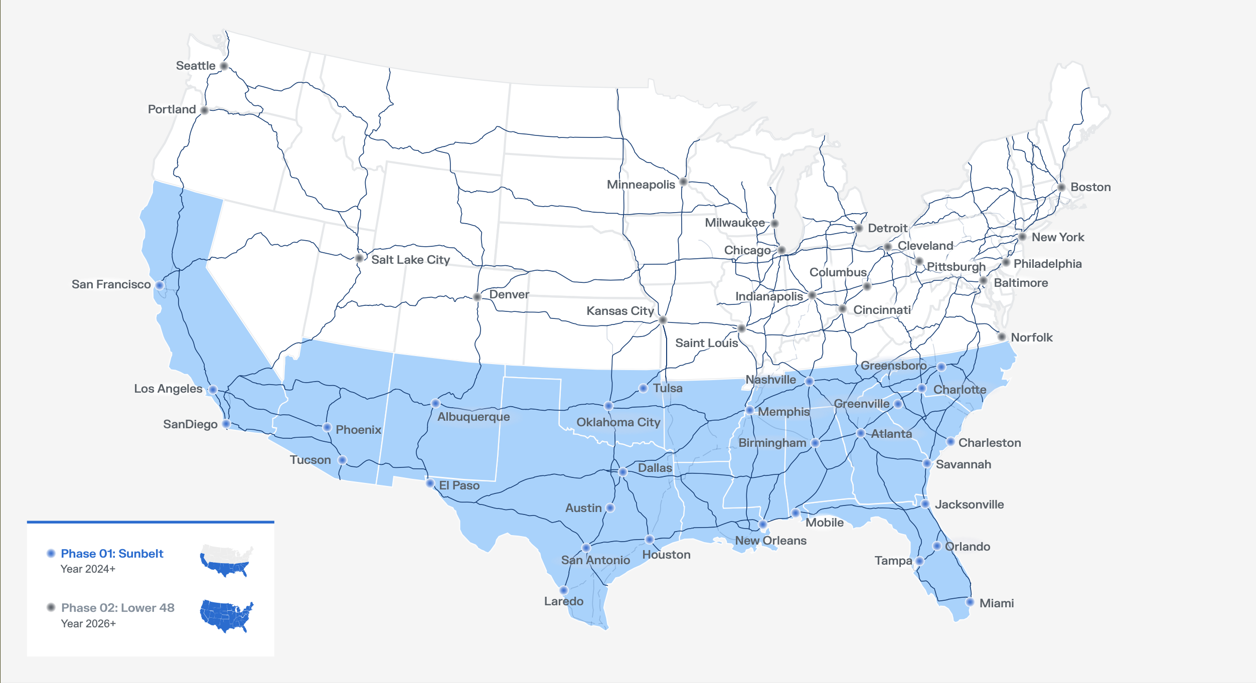 Autonomous companies often choose Sun Belt regions to begin operations because it’s rare to have to account for inclement weather patterns like snow and sleet, making the environment optimal for testing. But over the next five years, Embark and Ryder aim to work with a network of real estate operators to open 100 Embark transfer points across the country.
