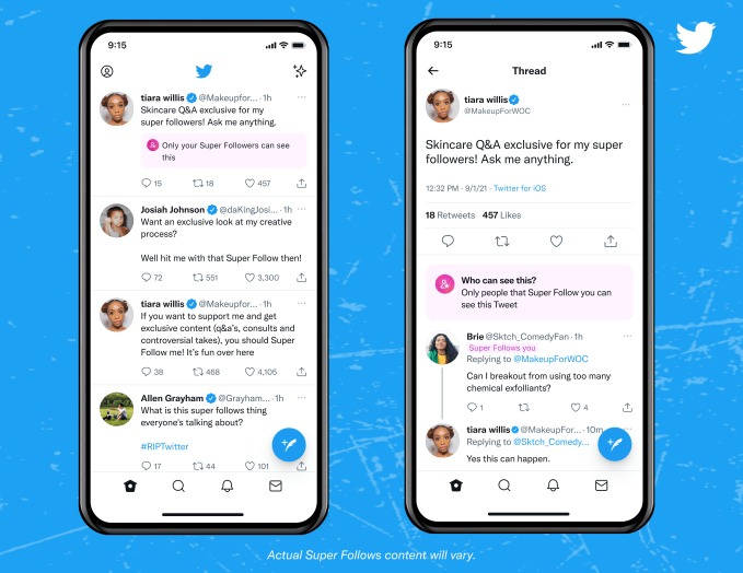 Today, Twitter’s business is highly dependent on advertising, and Super Follows is one of the few ways it’s aiming to diversify. The company is also now offering a way for creators to charge for access to their live events with Ticketed Spaces and, outside the U.S., Twitter has begun testing a premium product for power users, called Twitter Blue.