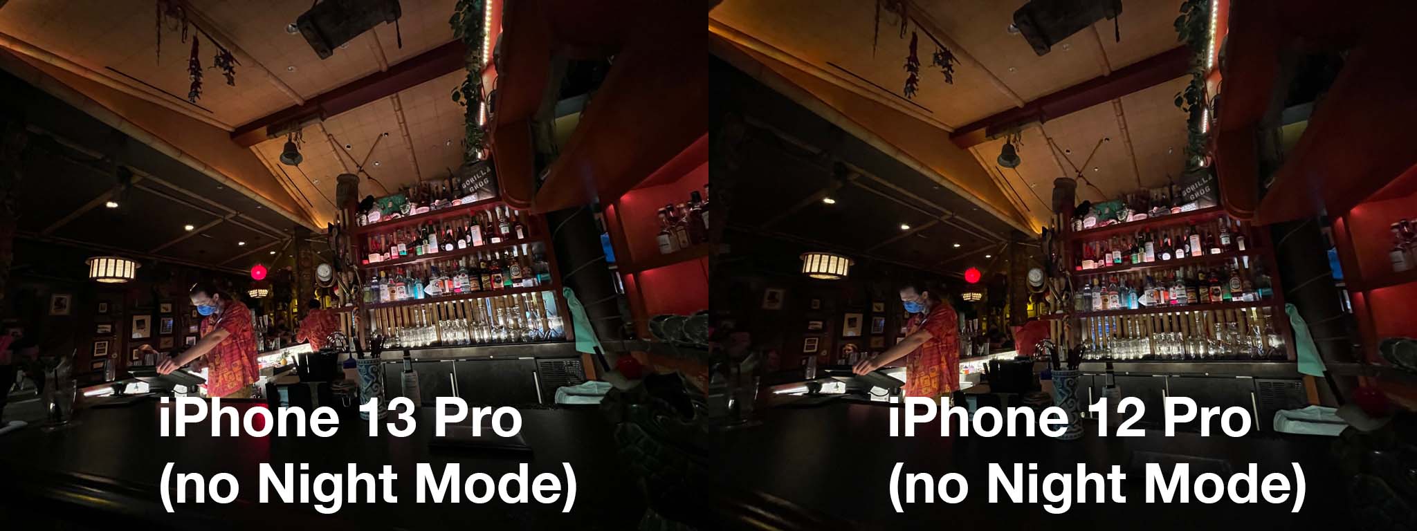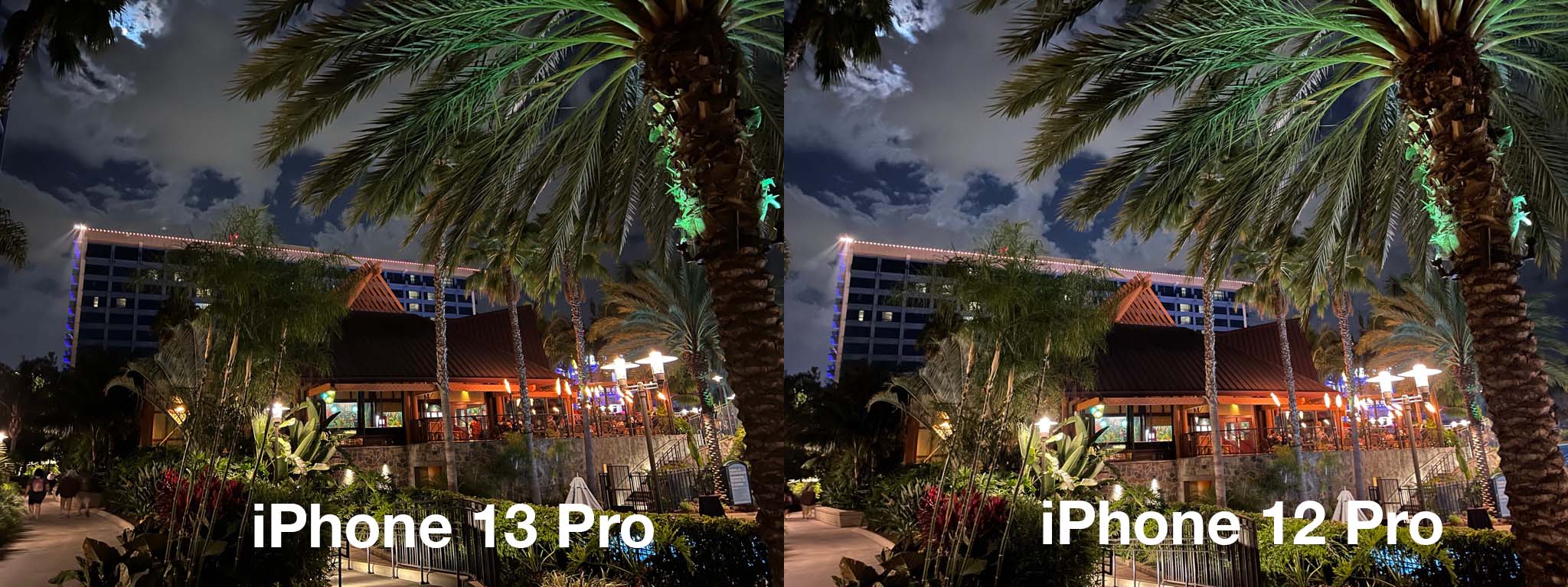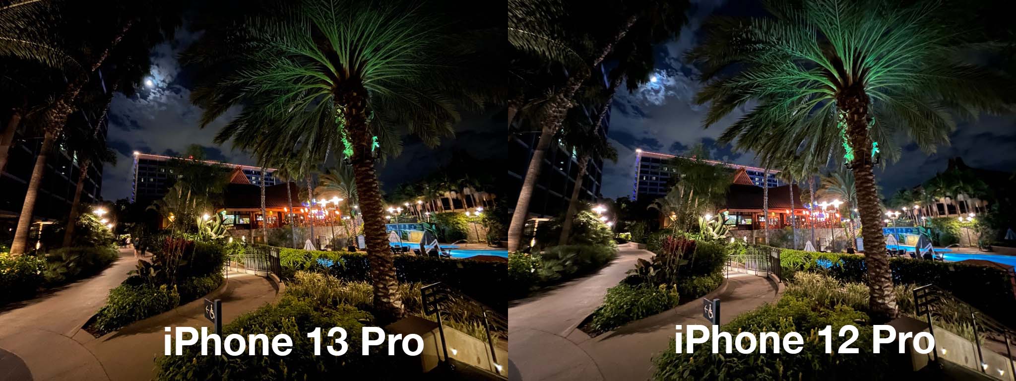 Check out these shots of a moonlit Trader Sam’s, a snap that you might grab because the lighting and scenery are just right. The iPhone 12 Pro isn’t bad at all here but there is an actually quite clear difference between the two in exposure. Both of these were taken with Night Mode disabled in order to compare the raw improvement in aperture.