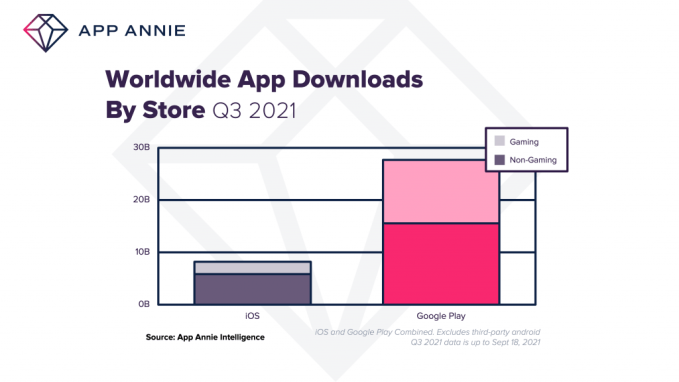 Android also still continues to outpace iOS on downloads, but the reverse is true when it comes to consumer spending.