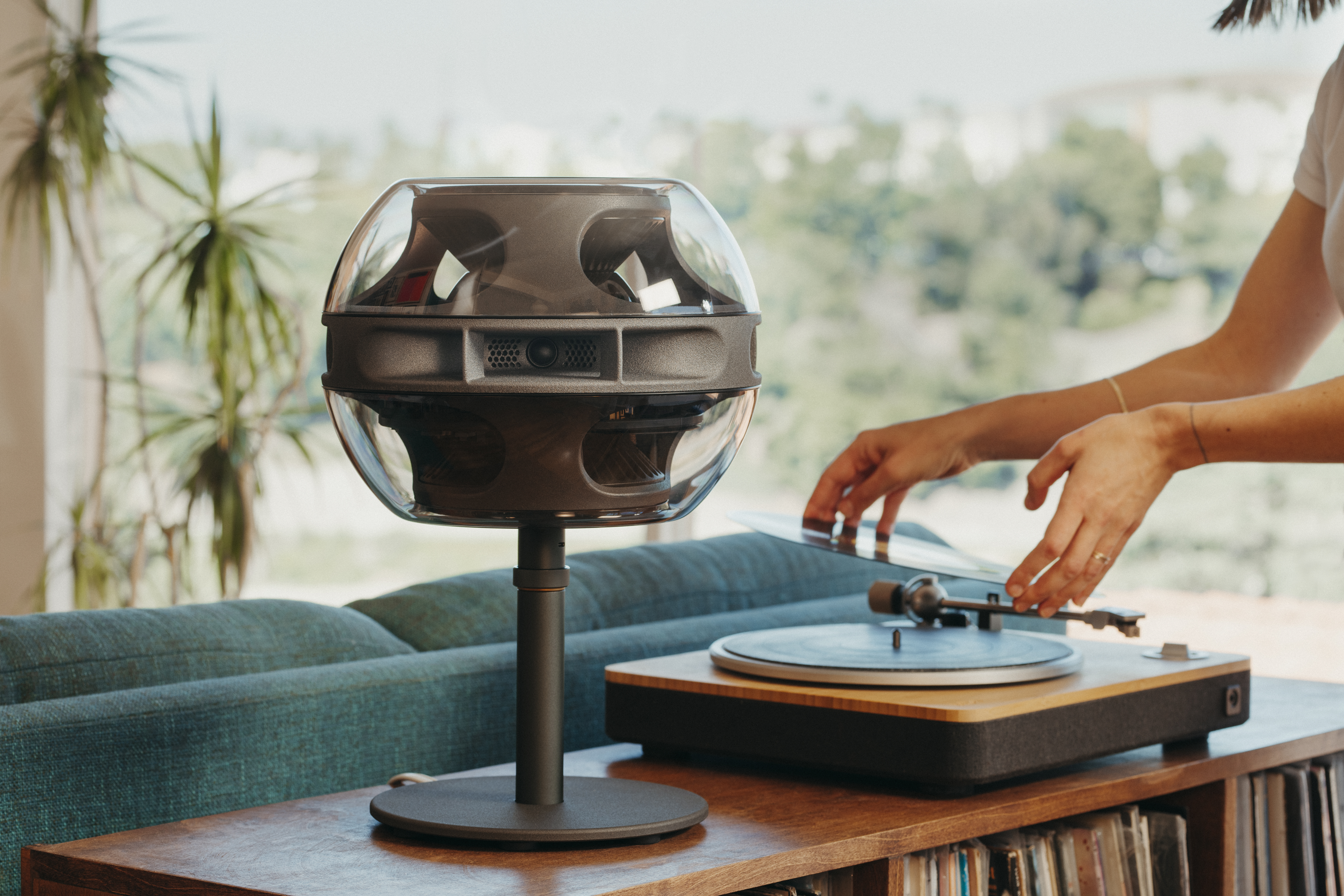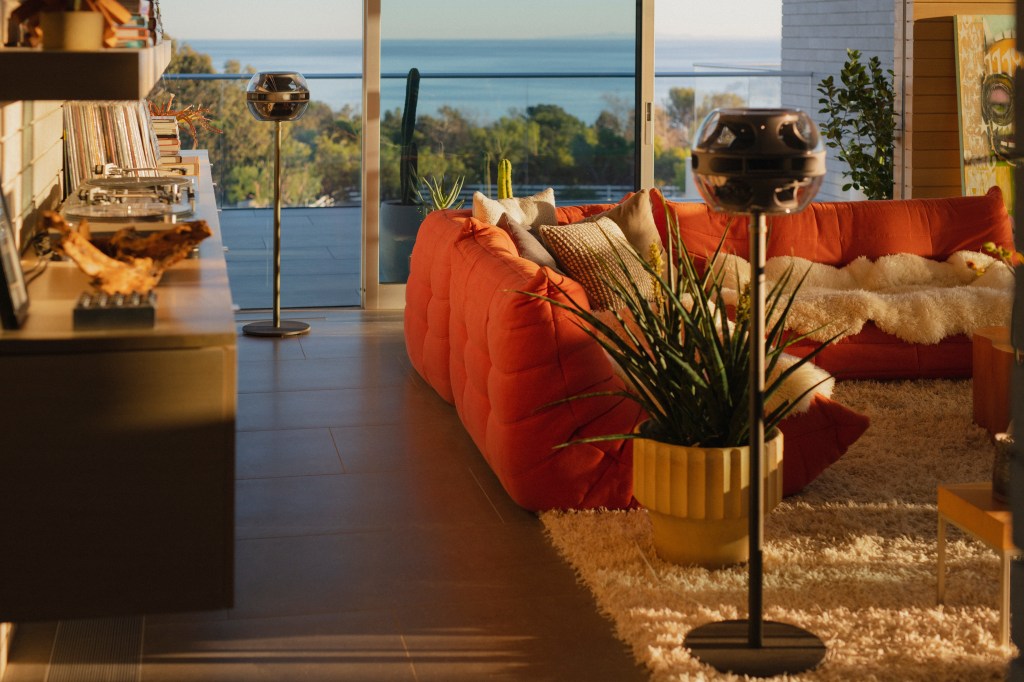 The company’s hardware relies on computational audio technology similar to tech that consumers have seen in products like the HomePod, which allows speakers to adjust to the spaces that they’re in. But Syng’s products are designed for spatial audio first-and-foremost. The company’s first product — the Syng Cell Alpha — is a high-end $1,799 speaker that looks like it belongs in a mid-century modern spaceship. The Apple design ethos is strong in the product which channels a bit of the Jony Ive-designed Harman Kardon SoundSticks, inside a package that Stringer says is meant to be treated more like a piece of furniture than the brutalist tower speakers that currently carve out the ultra high-end of audio.