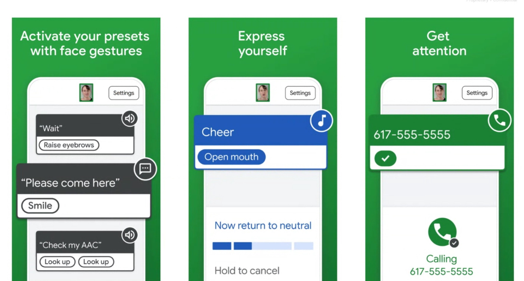 Image Credits: GoogleUsing Project Activate, expressions can be tied to self-contained actions like speaking a phrase. Many people with disabilities rely on caretakers for a variety of reasons, but one thing you can’t ask a caretaker to do is get your caretaker’s attention! So one useful application might be assigning (say) an extended eyebrow raise to have the device speak the phrase “hey!” or “I need help with something,” or “thanks!”