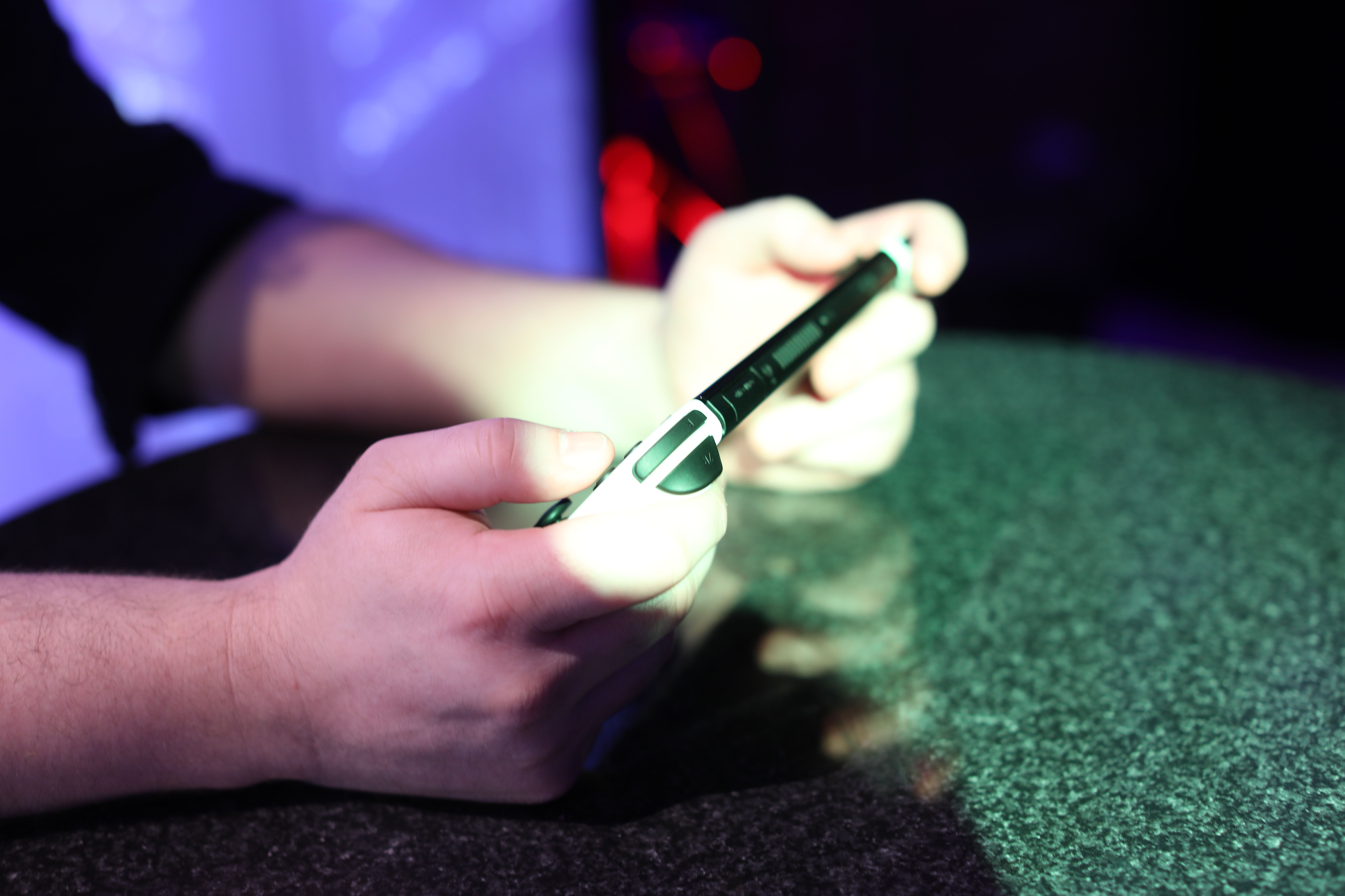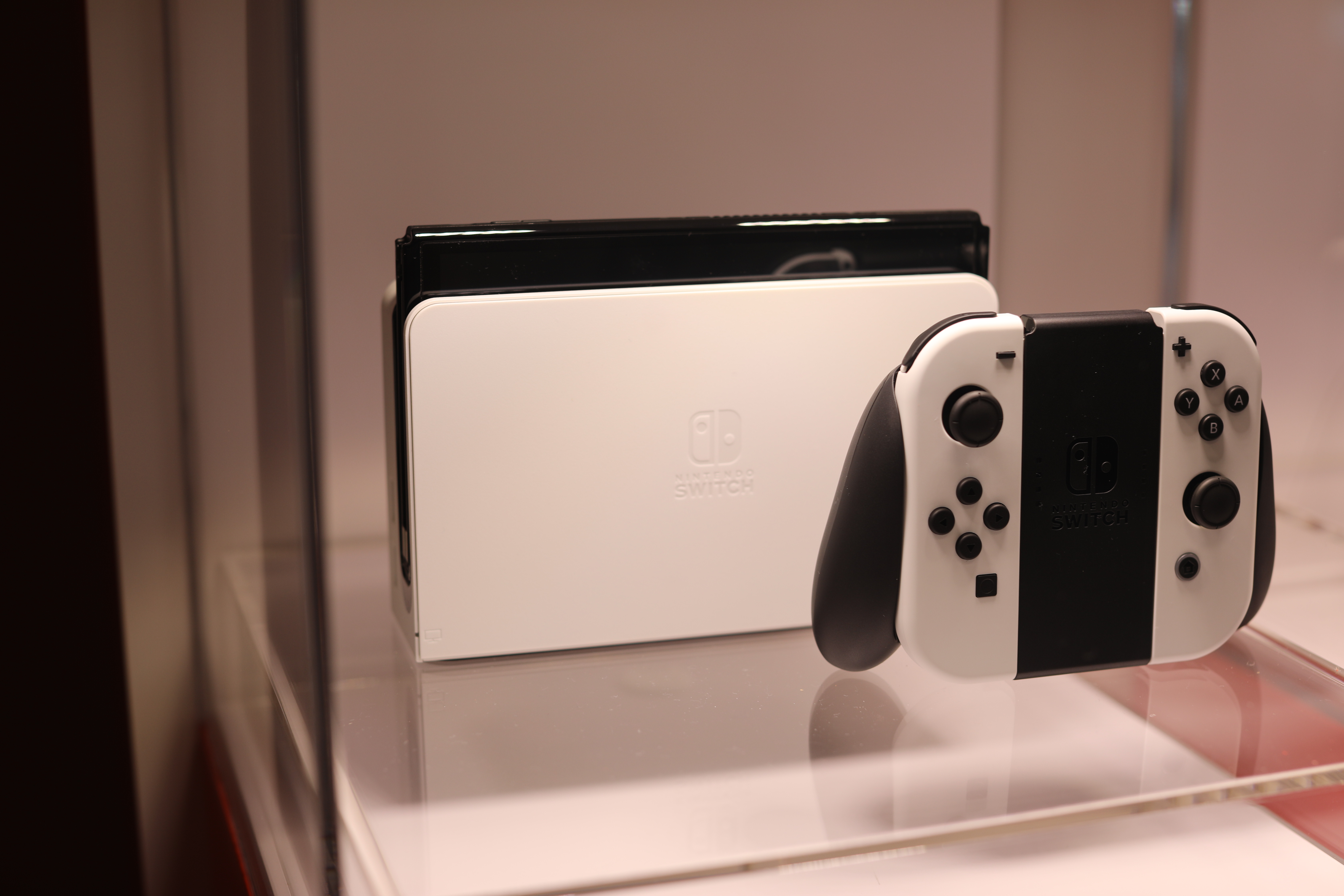 Waiting to play, I snapped a few quick shots of some OLED models on display, showcasing demos of Mario Kart. The system is striking in its black and white stormtrooper colors. When I finally got my hands on the system, the first thing that struck me was the weight. Granted, playing the Switch Lite for the past year has messed with my perspective on the matter, but the Switch OLED is also heavier than its predecessor, up to 0.93 pounds from 0.88.
