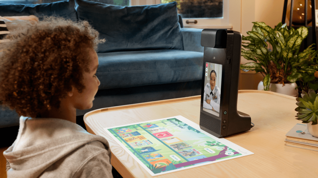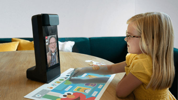 It also ships with something called “Glow Bits,” which are physical objects designed to work with the new device. The first Glow Bits kit is the Tangram puzzle game, where the child uses the puzzle bits to solve challenges while the remote family member plays along using digital puzzle shapes on their tablet’s screen.