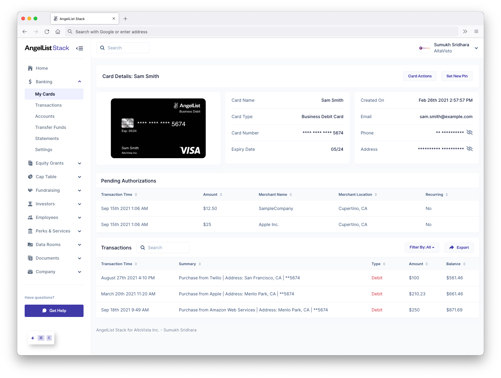 The banking tool has two parts: deposit accounts with interest and debit cards. Both accounts make it easier for founders to automatically accept wire transfers from investors, which can then blend into AngelList’s new cap table tool. The cap tool will include issuing digital shares, SAFEs, reporting, 409As and employee option grants.