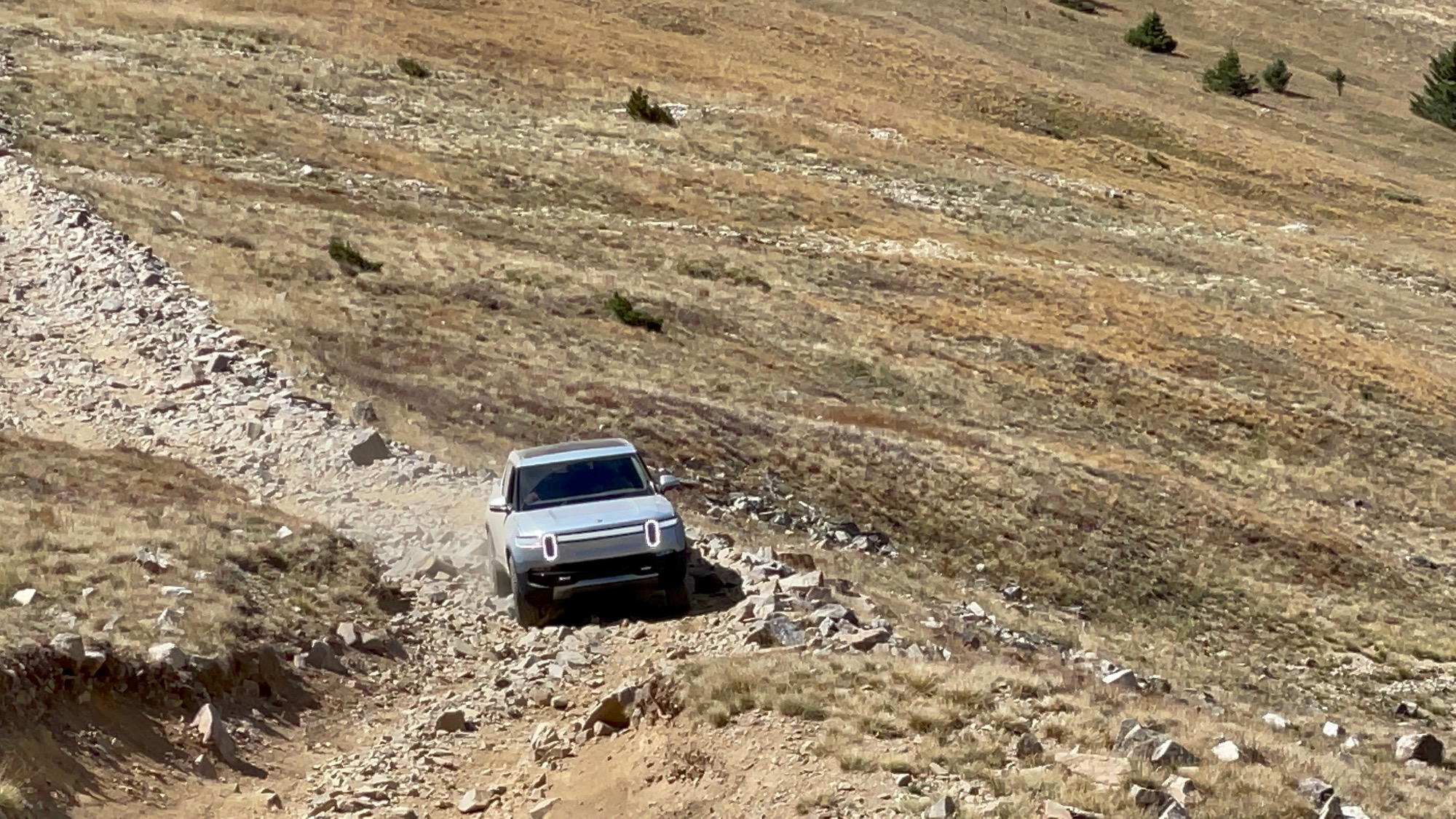 During our off-road excursion, we put the vehicle up and over steep slopes and even made a shallow ford. The ground clearance, combined with an approach angle of 34 degrees, a breakover of 25.7 and departure angle of 29.3 degrees, meant the vehicle never scraped or stuttered. There were moments when, as I prepared to drive around a particularly large boulder — the standard technique in other vehicles — a Rivian employee would encourage me to just drive over it. And I would, without the negative results.