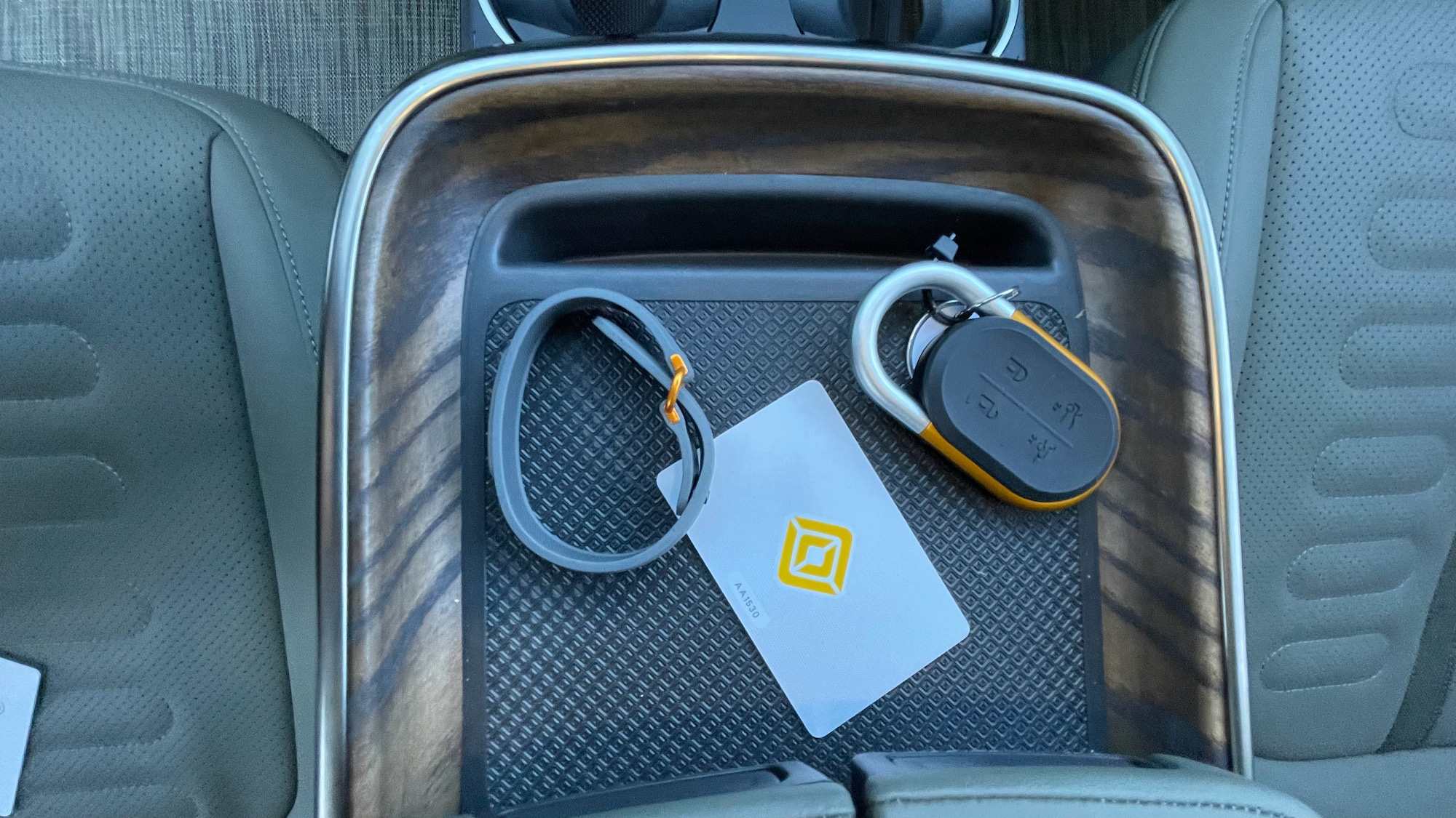 First up is the key. Or perhaps keys. Rivian developed four ways for owners to get into their vehicles: the phone app, a fob that has a carabiner-type lock, a credit-card-like key and a bracelet. That might seem like overkill, but it is in keeping with the target Rivian customer, who is active and likely on some kind of adventure in a remote area.