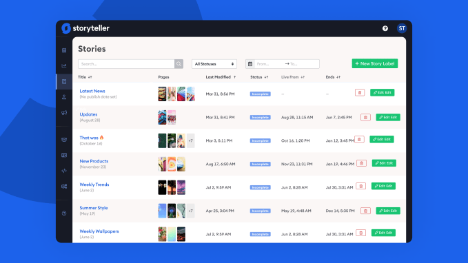 The company’s service allows anyone to add Stories to their app, or even their website, with little coding and setup required. Instead, Storyteller’s clients can integrate SDKs to add Stories to their app, then leverage a content management system (CMS) to author and publish their Stories, and track their performance.