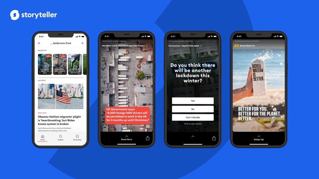 Pioneered by Snapchat and cloned by Instagram, the “Stories” feature has become a staple for modern-day mobile apps, from Google search to Pinterest to streaming apps and more. And while the addition doesn’t work for everyone — LinkedIn and Twitter recently shuttered their Stories features, for example — there’s enough demand for Stories out there on the market that a company called Storyteller has managed to create a revenue-generating business that provides “stories as a service.”