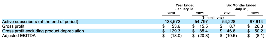 Here we can see a revenue decline yet again, from $88.5 million to $80.2 million during the six months concluding July 31 in 2020 and 2021, respectively. Costs also fell during the period, from $157.2 million to $132.0 million, which helped the company lose slightly less money in that time frame. Note the company’s high interest expenses, which impact its net income and will come back into our conversation shortly.