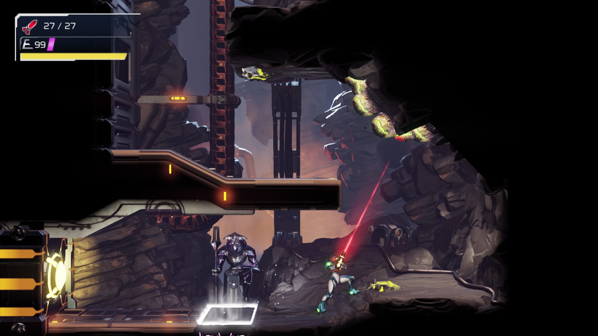 There are certainly points where things open up somewhat, but this is very much a guided tour of ZDR. At times it can even feel too restrictive and streamlined — while there is certainly backtracking, much of it is obviated by suspiciously conveniently placed teleporters, which tend to take you exactly where you need to go next. It takes a lot of the guesswork out of the game, which is a mixed blessing — I’ve been stumped in Metroidvanias many a time, but figuring out what to do next is part of the challenge.