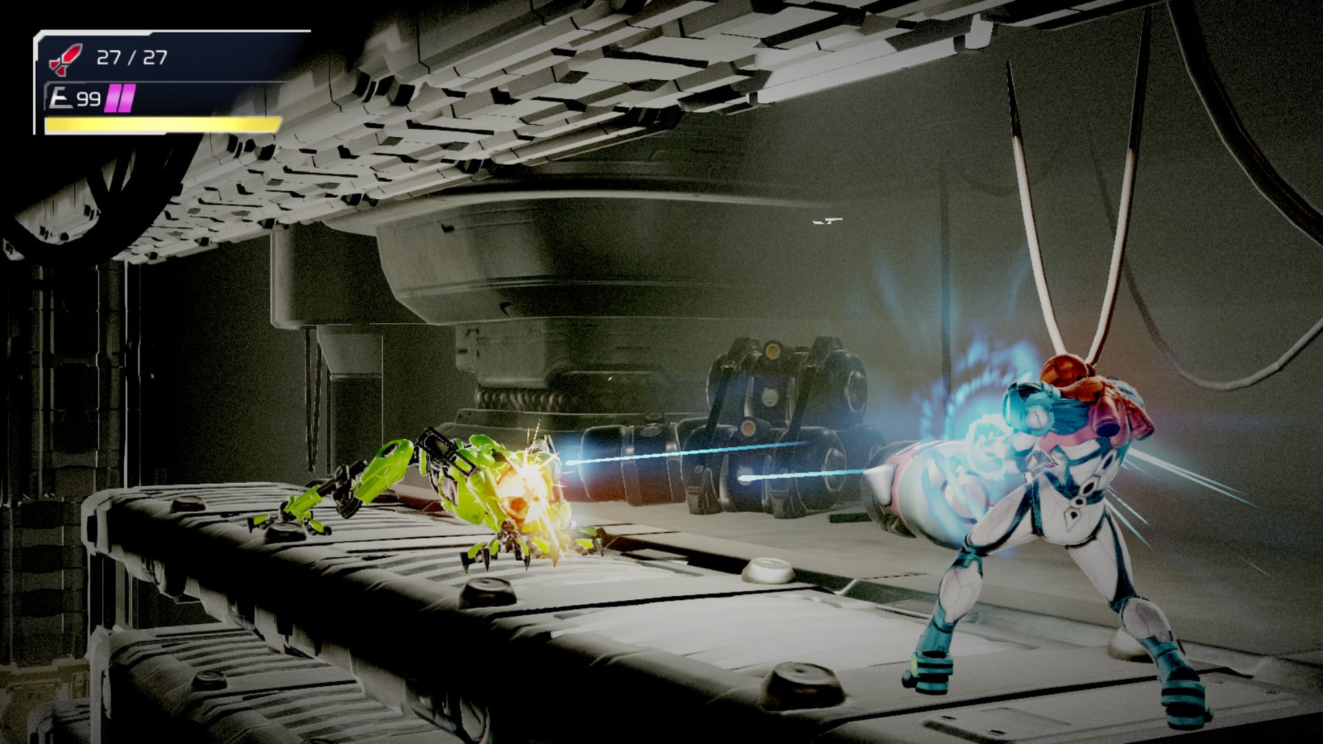 That’s especially true in Dread’s signature areas where invincible hunter-killer robots known as EMMIs roam, listening for Samus’s step and pursuing doggedly if they detect her presence. Fast and able to scale walls and creep through hidden tunnels, EMMIs are rather like Alien’s xenomorphs, and like one of those, if it gets hold of you it’s all over unless you can pull off a counter with very precise timing.