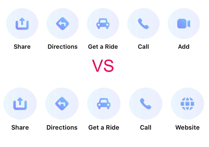 It was not immediately obvious, for example, how you could contribute your own photos and videos to a place, as some listings offered a prominently placed “Add” button for uploading your media, while it seemed others did not. In reality, the “Add” button wasn’t missing — you just had to scroll over to the right to see it. But it wasn’t clear that the row was scrollable. It looked like the Add button simply wasn’t there. (See below examples.)