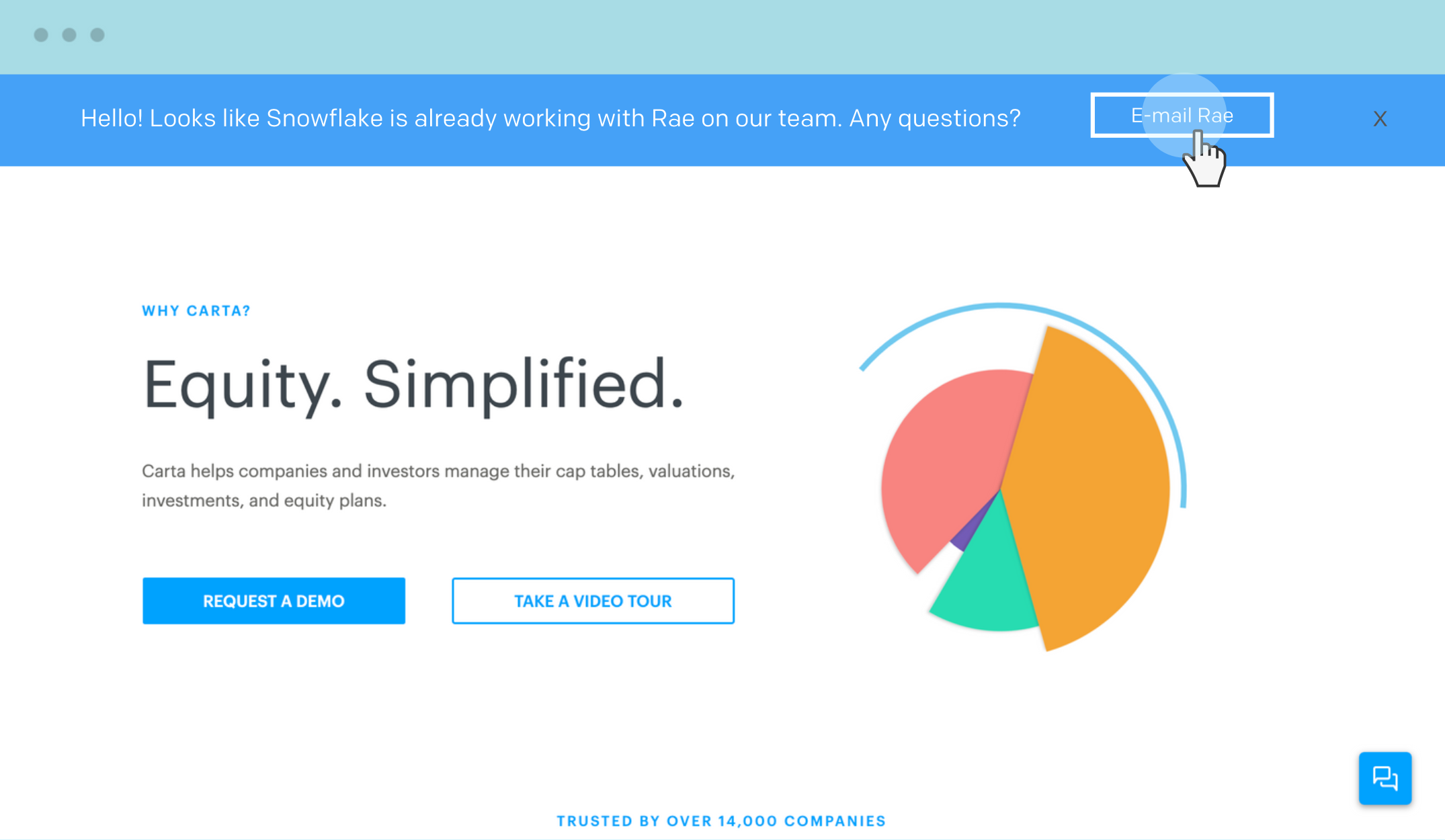 Use Salesforce to identify contacts at target accounts and create a personalized banner that briefly gives context on the deal process and tells them who to contact. In the banner, you can easily link to the email of the proper person on your team.