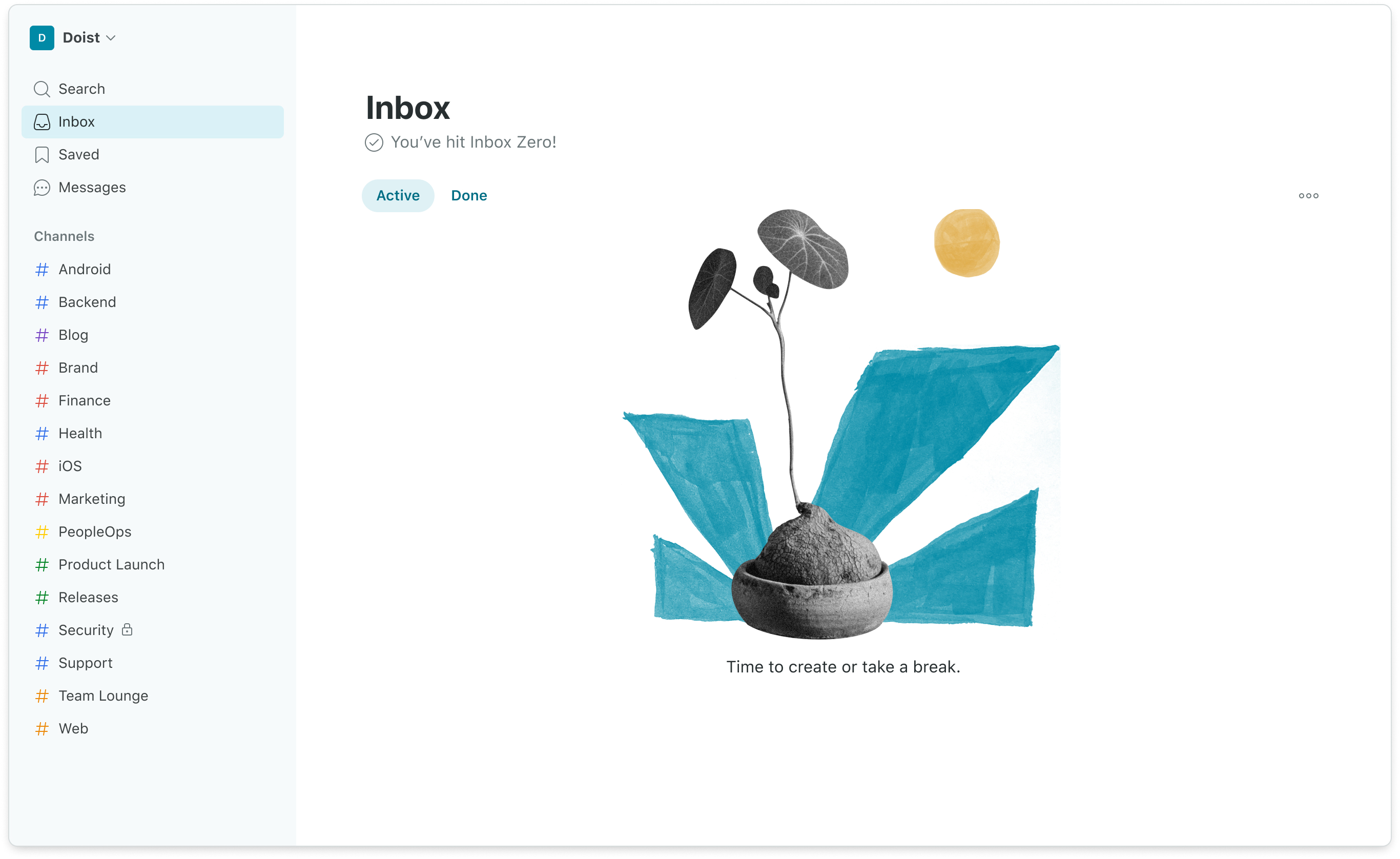 The inbox view has been redesigned to help you see what you missed when you weren’t looking at Twist. From this view, you can see new content in the threads that you’re following. You can read those threads, add comments and more. Once you think you’re done interacting with a thread, you can mark it as done. Twist moves the thread from your inbox to the “Done” view.