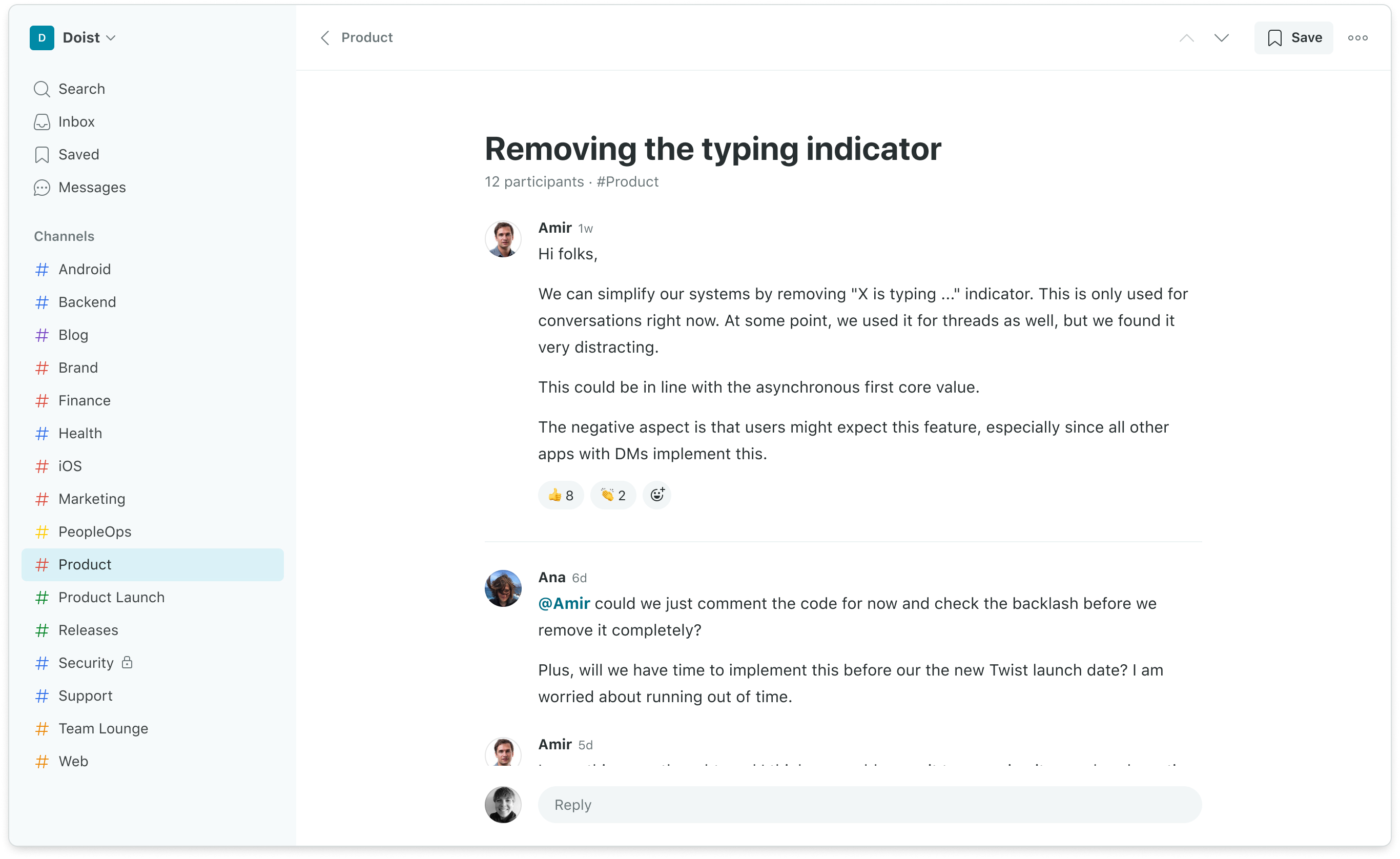 Doist founder Amir Salihefendic thinks those tools don’t work well. He has been promoting asynchronous communication for years. Slack or Microsoft Teams interrupt you all the time with notifications and chat messages. It’s hard to keep up, especially if you don’t work in the same time zone as the rest of the team. And it’s impossible to have two conversations at the same time in the same channel.