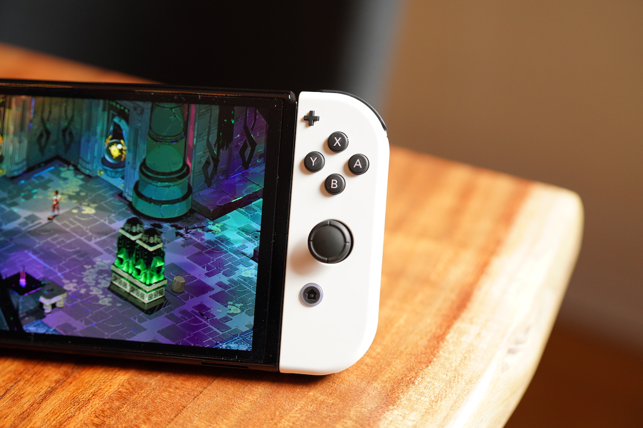 The screen itself is obviously the biggest improvement. I had the pleasure of playing Metroid: Dread on it, and the game’s fast-moving, colorful, high-contrast environments looked fantastic on it. The darker darks of the OLED screen made the light areas and colors pop more (though measurements have shown peak brightness is actually lower), and the additional screen real estate, while it looks minimal in photos, does in fact matter in person, making details, UI and text that much more comprehensible.