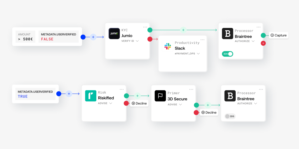 The importance of a tool like Primer is not just to make it much easier to build the payments check-out flow (e.g., creating a tree where you can map out all of the options of what happens when a person tries to make a purchase and it’s rejected or approved by, say, a card company) but simply to give those merchants an easier way of having a choice of providers, testing out different payments services and more.