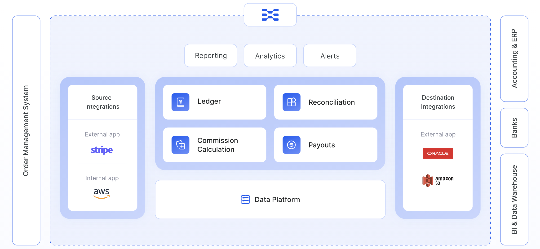 A diagram that Recko provides of where it sits in the payments and accounting environment really speaks to just how much integration of so many services is involved:
