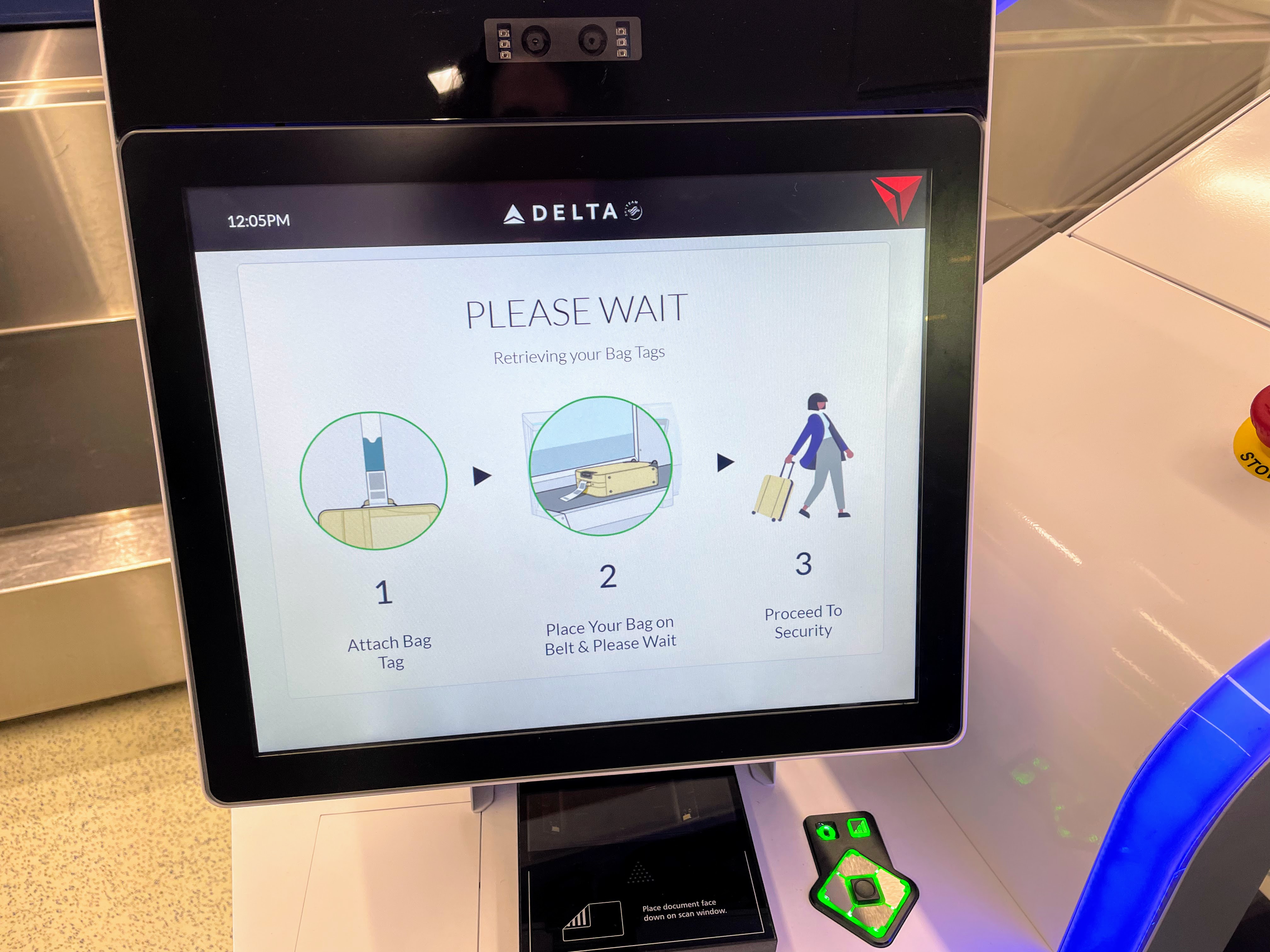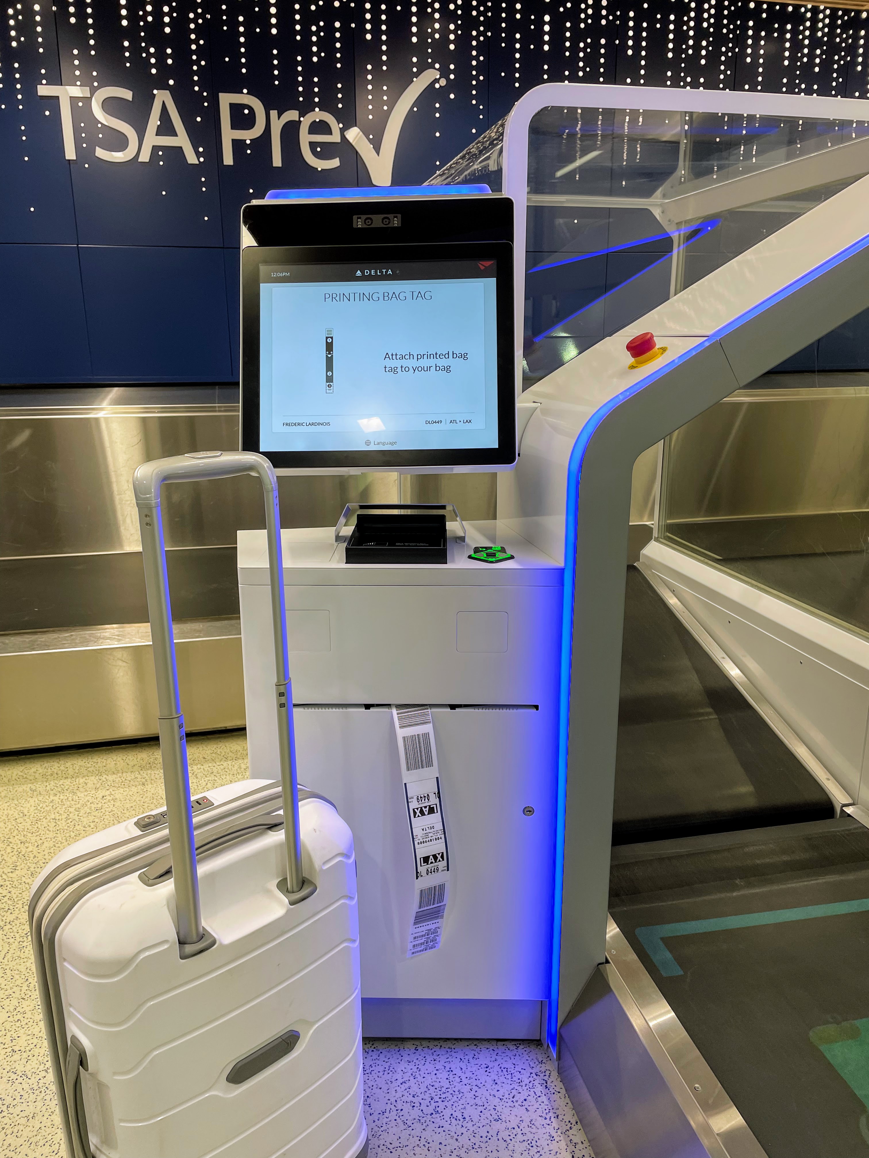 In Atlanta, where Delta and the TSA are running this pilot, members of Delta’s SkyMiles frequent flier program who are also TSA pre-check members now get their own self-service PreCheck bag-drop area. There, passengers who opt in to the program (which they have to do every time they check in to a flight on the Delta app) simply walk up to the new bag-drop machines, scan their face, which will validate who they are through the TSA’s database, and the machine will print out their baggage label for them. Once they attach the label, they set the bag on the belt and the new automated bag-drop machines weigh the bag and use cameras to check its size.