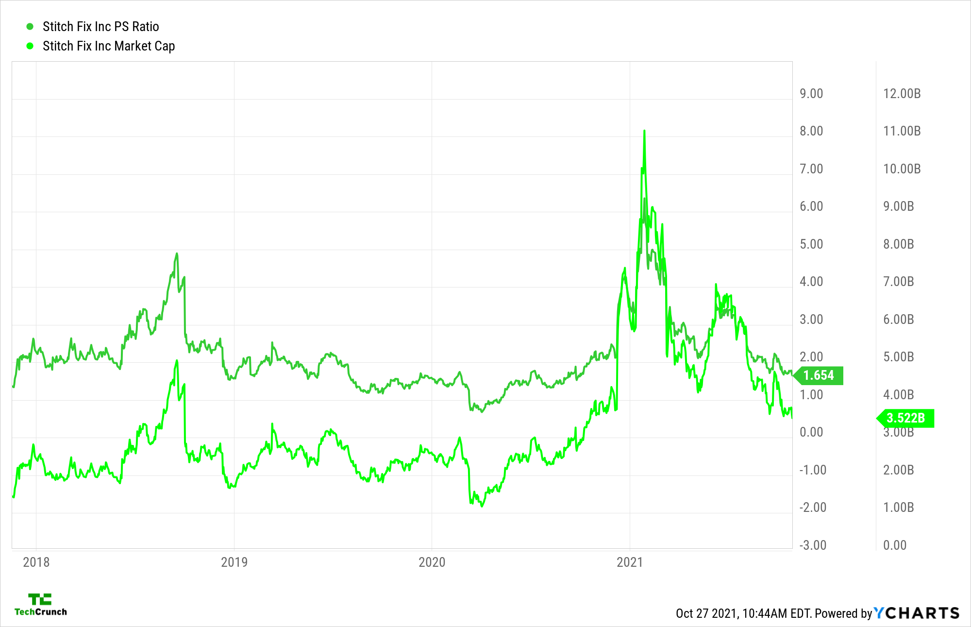 Still, I struggle to understand why the company’s revenue multiple is landing where it is, given that Stitch Fix — a related firm, though not a direct comp — is seeing its own valuation in revenue terms dip into a far lower range: