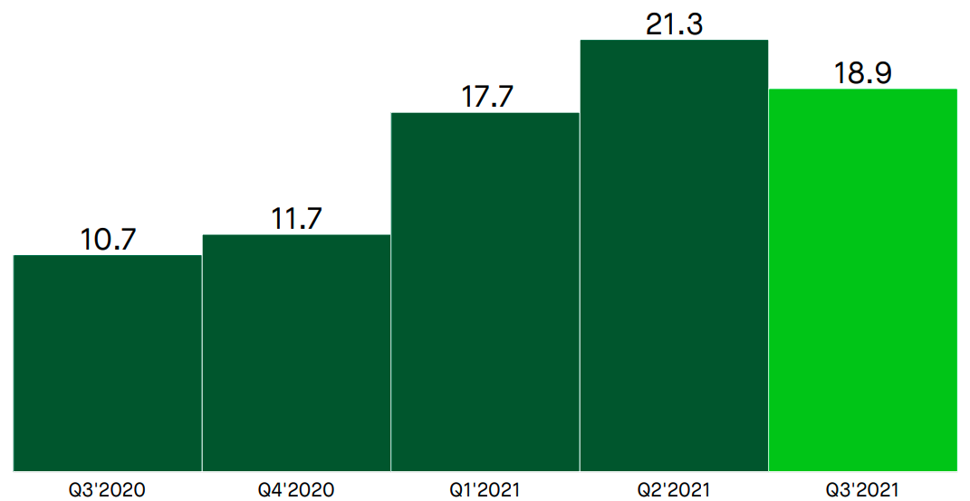 Notably, in Q3 2021, when compared to Q2 2021, equity and options incomes were pretty much flat. But crypto revenues dropped like a stone. They are responsible for Robinhood’s revenue declines from Q2. And that matters quite a lot for other companies.