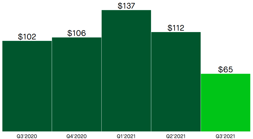 Robinhood’s net loss came to $1.32 billion, though seeing companies take huge losses in the quarter following their IPO is not uncommon. In adjusted EBITDA terms, Robinhood turned in -$84 million worth of the stuff in Q3, off sharply from a year-ago $59 million adjusted profit.