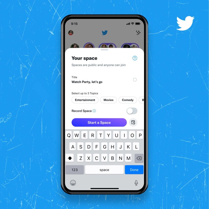 To use the feature, a Spaces host will create their live audio room by giving their Space a title and selecting up to three tags to describe what the room’s about, as usual. They can then toggle on the new setting, “Record Space,” before tapping on the “Start a Space” button to begin their live audio session.