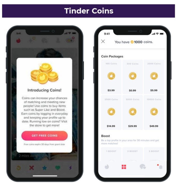 Next year, Tinder Coins will become available to global users to make in-app purchases of Tinder’s à la carte products, like Boost and Super Like — tools aimed at helping online daters get more matches. They’ll also be used for new pay-as-you-go products that were previously only available with a subscription, like the See Who Likes You feature. And they’ll be used to incentivize certain behaviors on the app, like encouraging members to verify their profiles or add videos to their bio, for example.