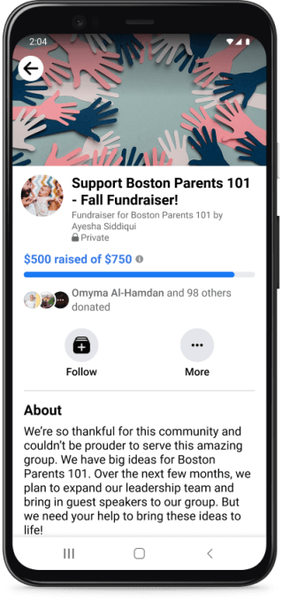 Facebook Groups will be able to host community fundraisers as well, to raise money for group projects, to pay hosts for their time managing the group or anything else admins and members want to support financially.