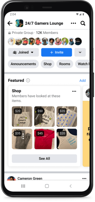 And groups will be able to sell merchandise through a shop attached to their group, which would be another way for members to support the group. Here, admins can sell products they’ve specifically created for their group — like custom tees or bags, for instance.