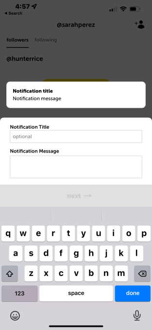 In case it’s not clear by its minimalist App Store listing, the new app offers a basic follower/following model and lets users send out a push notification to everyone who subscribes to you on the app. Those followers can then respond to that notification to spark a one-on-one conversation, similar to Sendit.