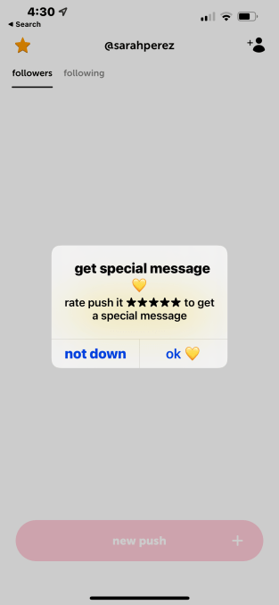 Amid today’s push for increased privacy, SMS-based growth mechanics are generally looked down upon after years of over-zealous app invite spamming became the norm. Fortunately, however, Push it doesn’t auto-text your friends, it just pushes you to. (However, the app’s privacy policy doesn’t do much to assuage fears about what it’s doing with your personal data. It’s clear that data will be used for marketing purposes and shared with Push it’s vendors and business partners, the policy says.)